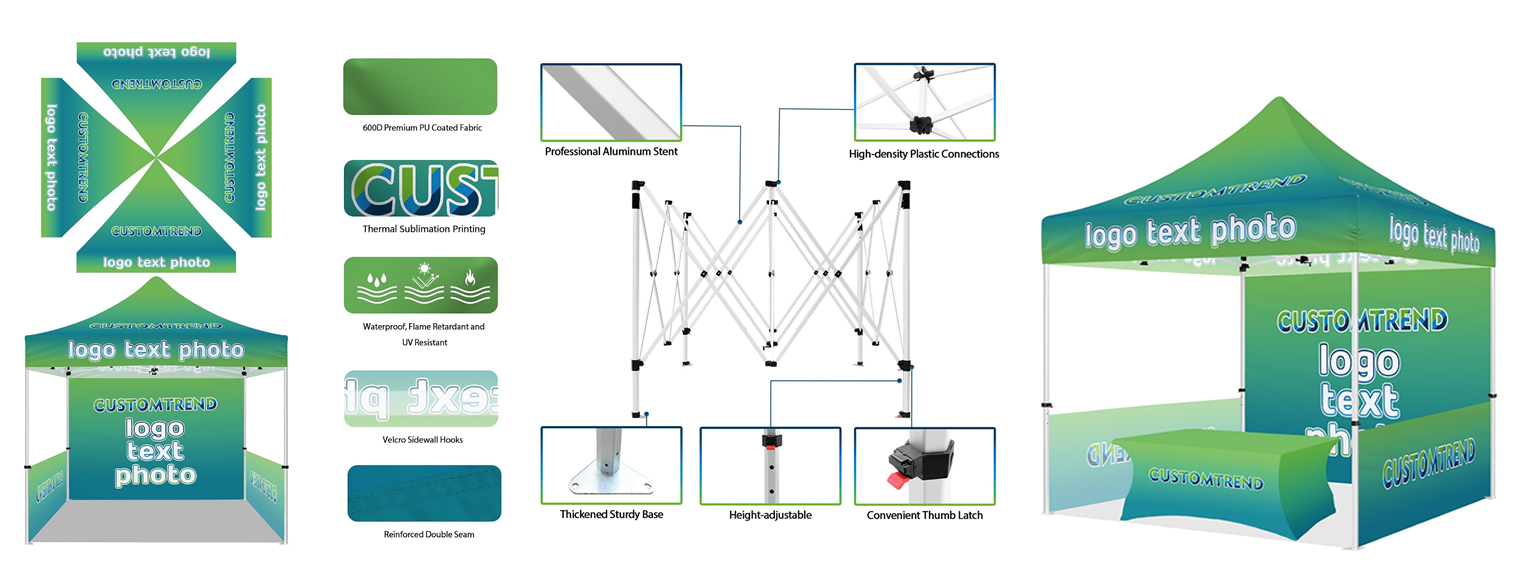 ✅ Top canopy fabric: Full-color logo, patterns, or text